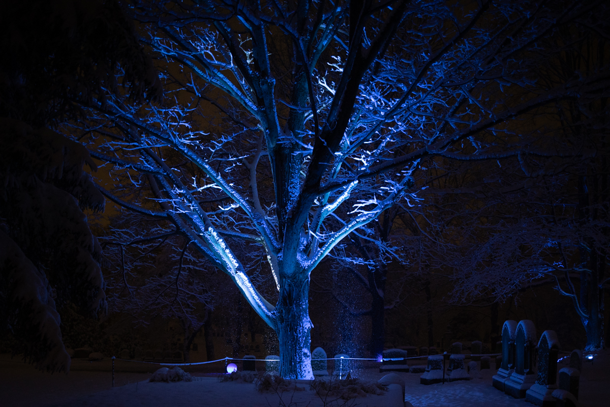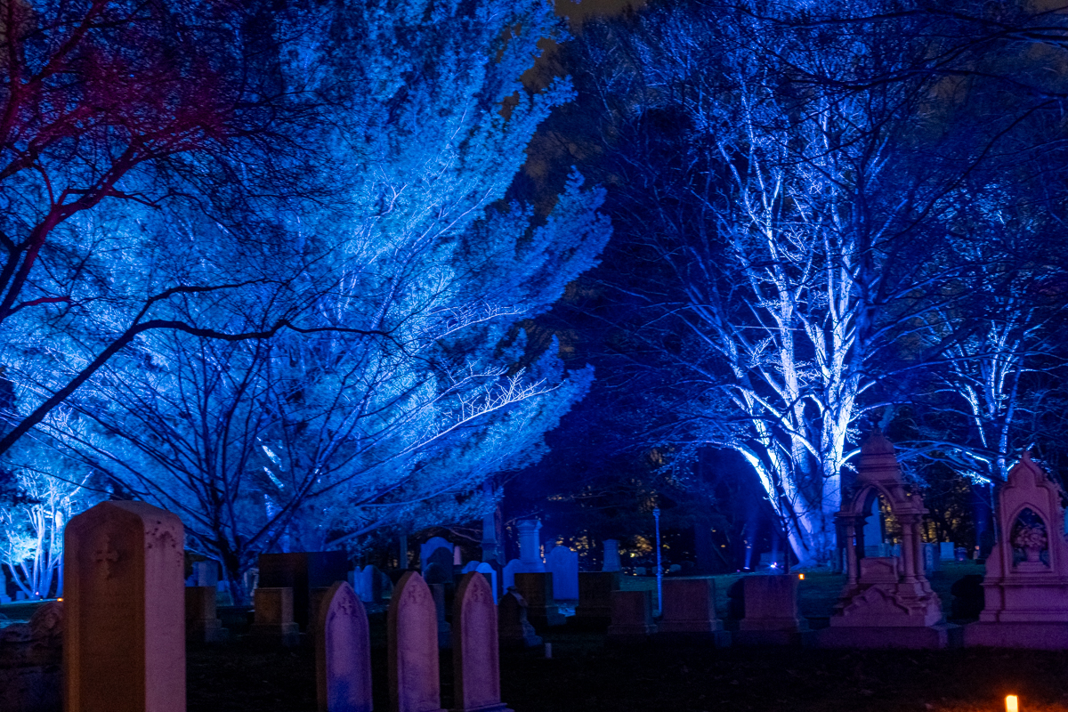 Since 2022, I have had the pleasure of joining with Masary Studios to create Solstice at Mount Auburn Cemetery. In addition to bringing my project management talents to this large-scale outdoor installation, I also provide projection mapping and landscape lighting design services.